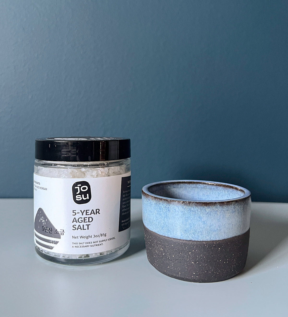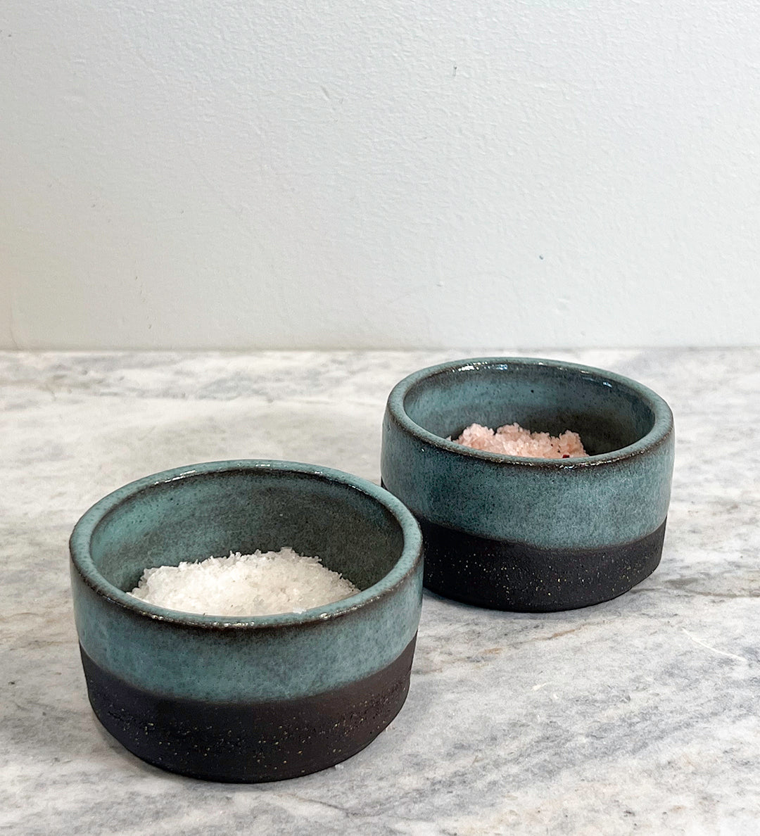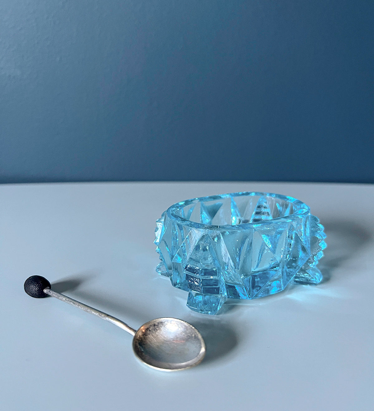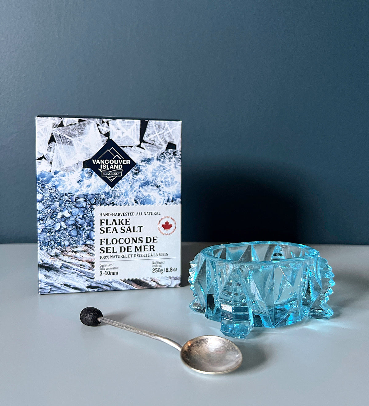 Tinted with a dark ruby red, this vintage salt cellar is in the Val Saint Lambert style (though we couldn’t confirm the exact provenance). Perfect for your eclectic tablescape, this gem of a salt cellar includes a metal lid and spoon. We’d pair this one with our best flake salts or favorite finds from our travels to really show it off and spark conversation.
