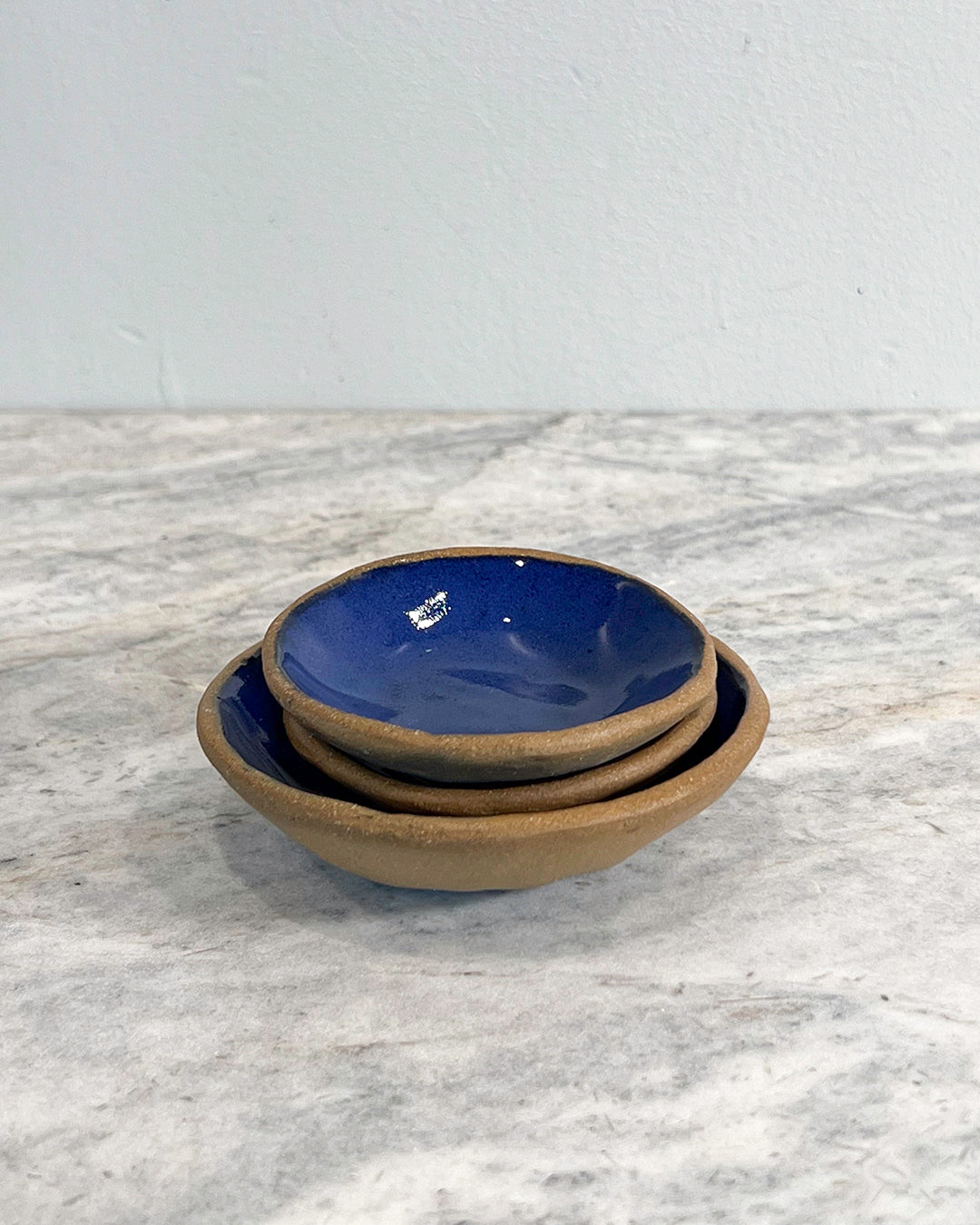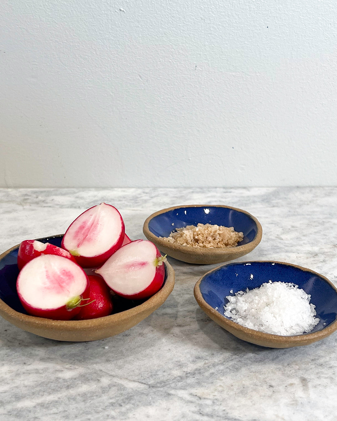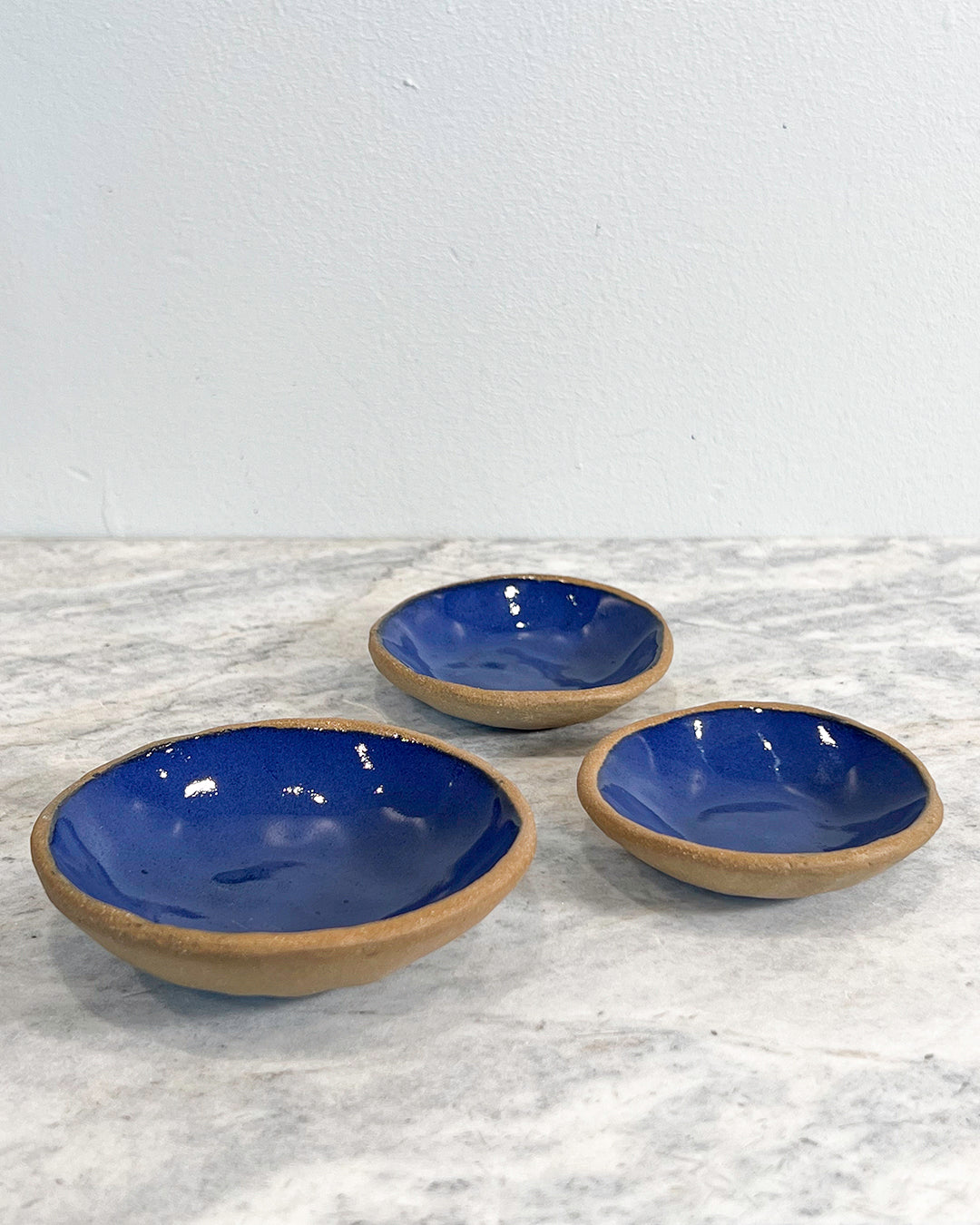 Handmade set of three pinch pots by DAVA. These little bowls can be used for your favorite salts of the week, or olives and honey on a cheese board. Infinitely useful and dishwasher safe.