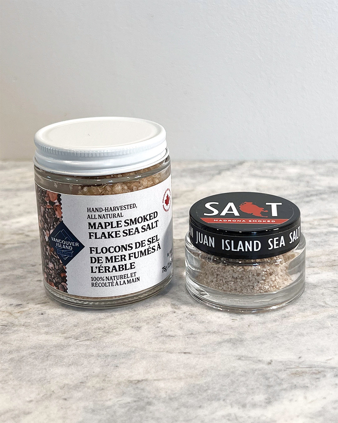 Hand-harvested from the cold, clear waters of the Canadian Pacific before being carefully smoked for several days in small batches using real maple wood. This smoked salt has the aroma of maple and is another favorite for baked goods. It's also delicious as a pinch in your coffee.