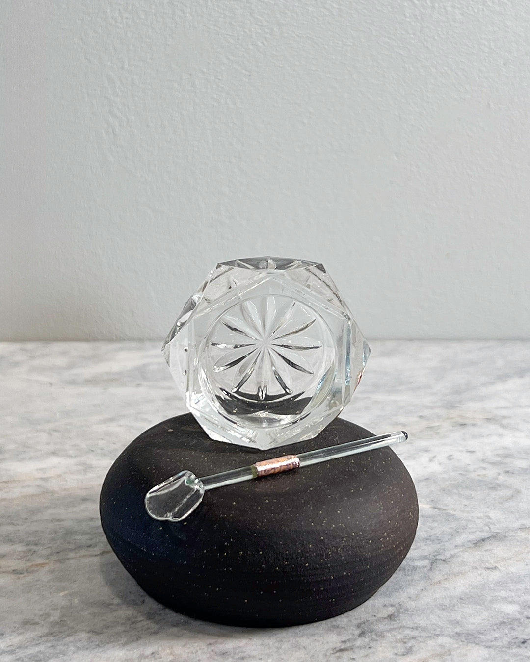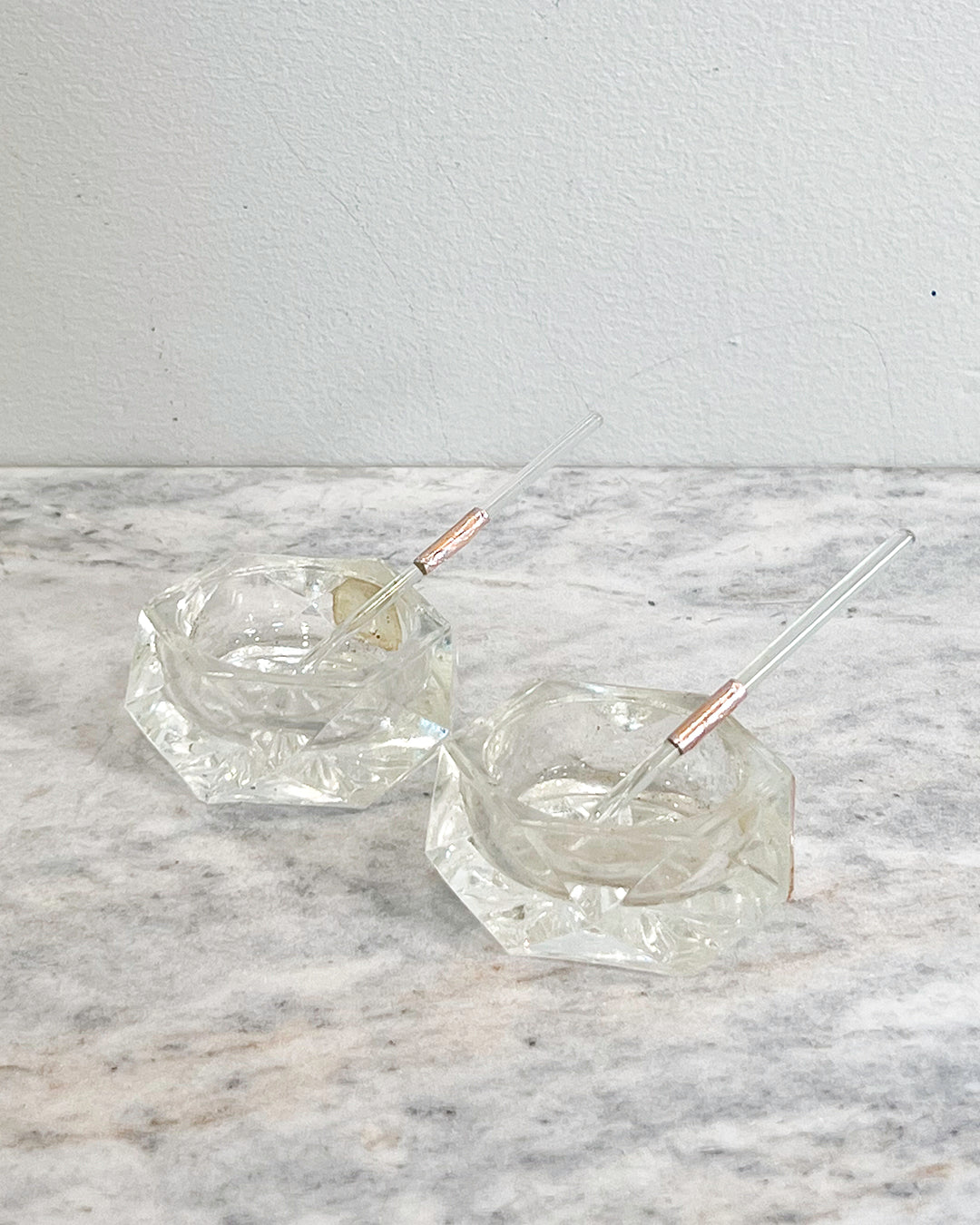 Vintage Glass Salt Cellars with Square Spoons, Set of 2