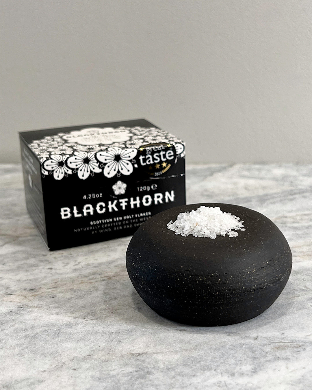 Hand-harvested from the windswept shores of Scotland, Blackthorn Salt is sustainably crafted, honoring traditional methods for a unique, pure flavor.