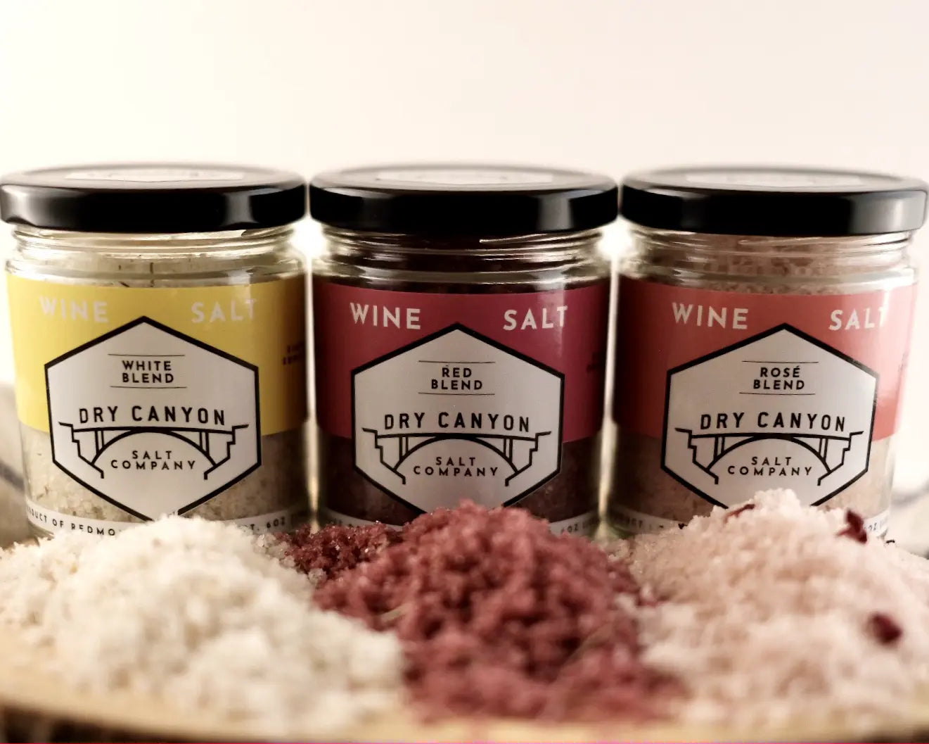 Dry Canyon Salt Company, a woman-owned business from Oregon, creates bold, handcrafted salts infused with real wine reductions for a distinctive culinary experience.