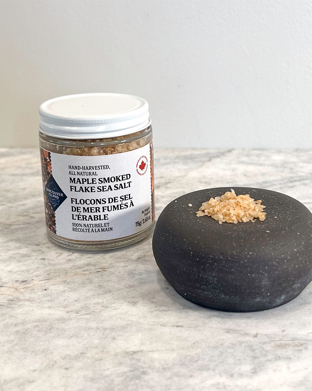 Hand-harvested from the cold, clear waters of the Canadian Pacific before being carefully smoked for several days in small batches using real maple wood. This smoked salt has the aroma of maple and is another favorite for baked goods. It's also delicious as a pinch in your coffee.